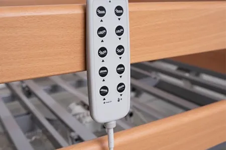 | Lockable Remote Hand Control | Remote controller is easy to use. Patients can easily reach and hang it to the bed. Its ergonomic shape provides comfortable one-hand usage and fast access to all bed functions. It is also possible to block individual functions. The handset is supplied with a lockout function which enables the carer to disable bed functions if they are deemed unsuitable for the occupant - bed’s functions or the Trendelenburg function (only in the case of 10-button handset) with the use of a mechanical or magnetic key (an appropriate key is included in the instruction manual). Standard 9-button handset. |