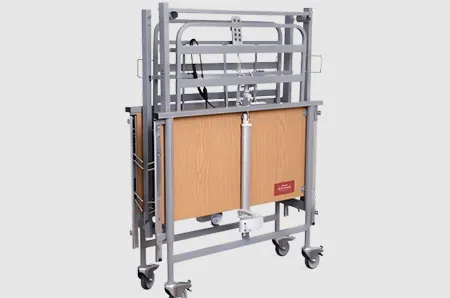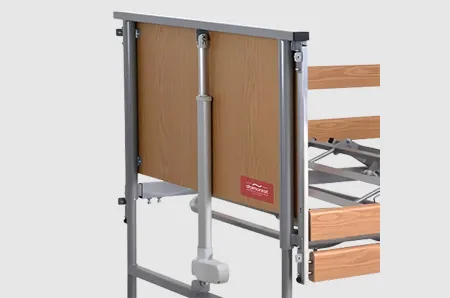 | Siderails | The fully covered wooden side rails maximize patient safety and prevent falls. To add comfort, the side rails have been lowered to facilitate patients to get up and sit on the bed. |