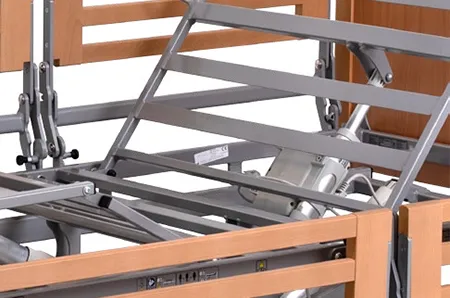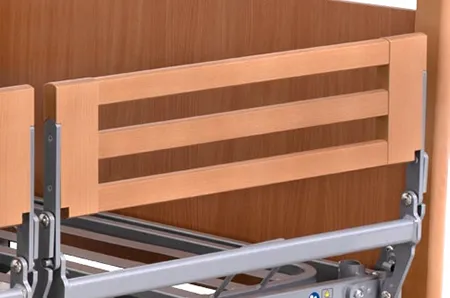 This bed meets the highest world standards and provides comprehensive support for disabled patients and those who require long-term care. In this bed, we have used a split side rail system. This solution allows easy access to the patient while maintaining a high level of safety.
